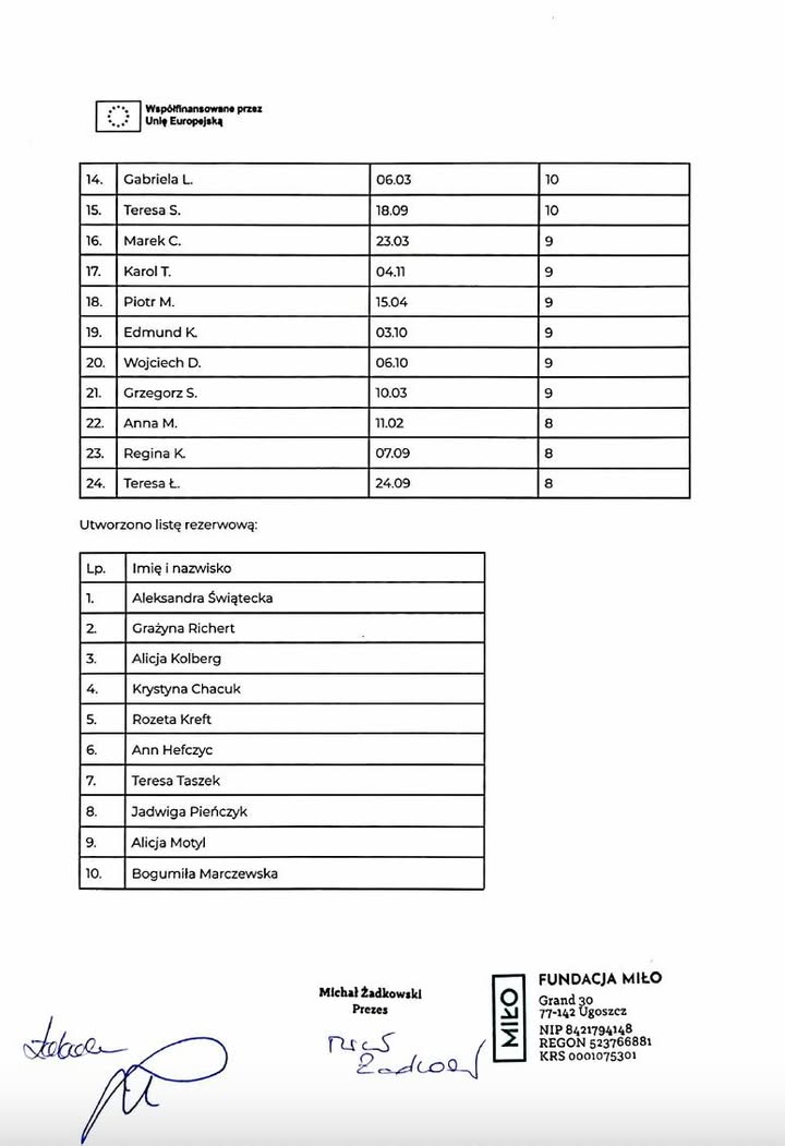 Dnia 1 lipca 2025 komisja rekrutacyjna, powołana przez Prezesa Fundacji Miło dokonała oceny formularzy rekrutacyjnych 96 kandydatów do udziału w projekcie„MIŁOśnicy Wiedzy, czyli Redzcy Seniorzy rozwijają kompetencje kluczowe z programem Erasmus+.”