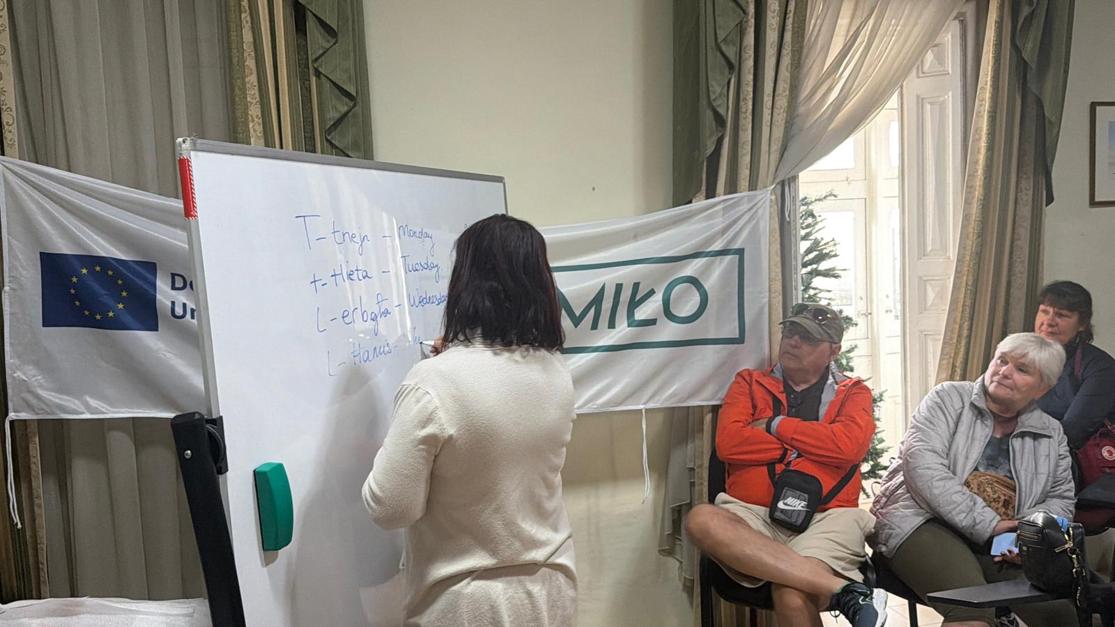 W poniedziałek 8 grudnia, odbył się piąty dzień mobilności grupowej seniorów realizowanej w ramach projektu „MIŁOśnicy Wiedzy, czyli Redzcy Seniorzy rozwijają kompetencje kluczowe z programem Erasmus+”. To był dzień pełen ruchu, emocji i odkryć – zarówno kulturowych, jak i matematycznych. Poranek rozpoczął się rozgrzewką językową z języka maltańskiego, podczas której uczestnicy doskonalili podstawowe zwroty przydatne w codziennej komunikacji. Trenerzy z Future Focus Ltd. prowadzili krótkie ćwiczenia w parach, które wprowadziły wszystkich w dobry nastrój i pomogły przełamać barierę językową. Następnie odbyła się rozgrzewka kulturowa w formie spaceru fotograficznego po Valletcie. Seniorzy, uzbrojeni w aparaty i karty pracy, szukali w architekturze miasta geometrycznych kształtów – łuków, symetrii, proporcji i figur, które tworzą unikalny rytm przestrzeni Malty. Zajęcia łączyły sztukę obserwacji z elementami edukacji wizualnej i matematycznej, a jednocześnie stanowiły pretekst do spokojnego poznawania urokliwych uliczek stolicy. Po krótkiej przerwie rozpoczęła się gra miejska „Matematyka w przestrzeni miasta”, będąca jednocześnie głównym blokiem edukacyjnym dnia. Zamiast tradycyjnych warsztatów seniorzy wzięli udział w interaktywnej zabawie terenowej, która połączyła naukę, ruch i współpracę. Uczestnicy zostali podzieleni na kilka zespołów, a każdy z nich otrzymał mapę Valletty, zestaw kart zadań i kalkulator. Ich misją było odnalezienie kolejnych punktów gry, rozwiązując po drodze zagadki logiczne, zadania z szacowania odległości, obliczania pól powierzchni, porównywania proporcji czy interpretacji cyfr rzymskich. Rywalizacja była zdrowa, pełna śmiechu i entuzjazmu, a przy tym doskonale pokazała, jak matematyka funkcjonuje w otaczającym świecie – od architektury po codzienne planowanie. Po przerwie obiadowej uczestnicy kontynuowali edukację podczas warsztatów „Matematyczne pułapki – jak czytać liczby, wykresy i statystyki”. Trenerzy omówili najczęstsze błędy popełniane przy interpretacji danych, pokazując, jak łatwo ulec złudzeniu, gdy liczby przedstawione są w nieprecyzyjny sposób. Seniorzy pracowali na przykładach medialnych, ucząc się krytycznie analizować wykresy i procenty, które mogą wprowadzać w błąd. Popołudniowy blok poświęcony był wartościom Unii Europejskiej. W plenerze, w otoczeniu historycznych murów Valletty, odbyła się debata „Różnorodność w UE – bogactwo czy wyzwanie?”. Uczestnicy usiedli w kręgu i wzięli udział w grze argumentacyjnej. Każdy losował kartę z tezą „za” lub „przeciw”, którą musiał uzasadnić, odnosząc się do własnych doświadczeń i refleksji. Dyskusja była pełna zaangażowania i pokazała, że różnorodność – kulturowa, językowa i społeczna – może być źródłem siły i wzajemnego zrozumienia. Na zakończenie dnia odbyła się ewaluacja połączona z rozstrzygnięciem gry miejskiej. Ogłoszono zwycięski zespół, który jako pierwszy rozwiązał wszystkie zadania i dotarł do finałowego punktu na mapie Valletty. Cały dzień upłynął w duchu aktywności, nauki poprzez doświadczenie i wspólnego odkrywania świata – w pełni oddając ideę uczenia się przez całe życie. Przypominamy, że działanie jest finansowane ze środków Unii Europejskiej. Program Erasmus+, Erasmus+ Edukacja dorosłych Typ akcji: AKCJA 1 Mobilność dorosłych osób uczących się i kadry edukacji dorosłych - projekty krótkoterminowe (KA122-ADU) Numer wniosku: 2025-1-PL01-KA122-ADU-000340400 Tytuł projektu: MIŁOśnicy Wiedzy, czyli Redzcy Seniorzy rozwijają kompetencje kluczowe z programem Erasmus+.